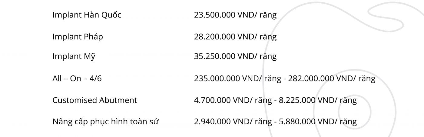 Bảo hành vĩnh viễn trụ Implant, riêng bảo hành chụp sứ trong vòng 5 năm kể cả lỗi người dùng.
